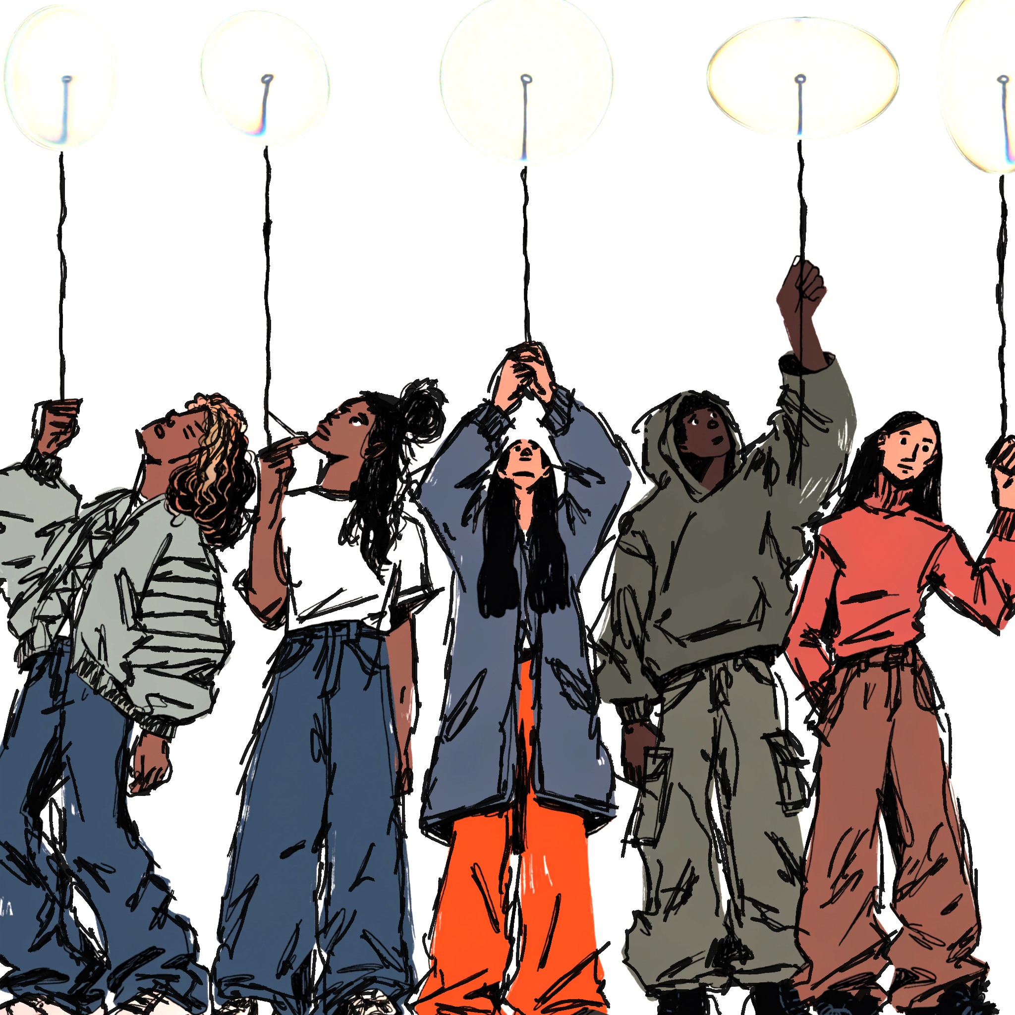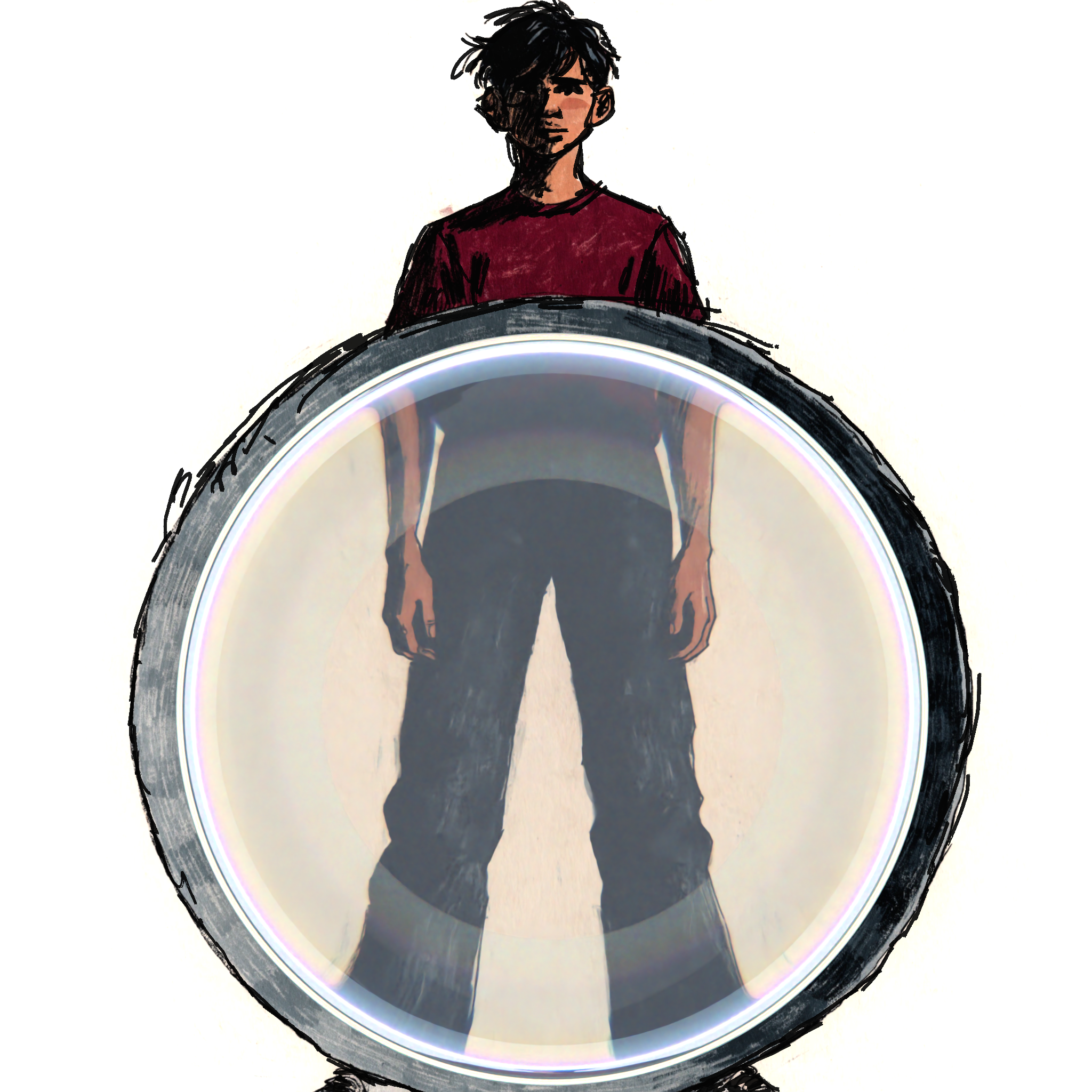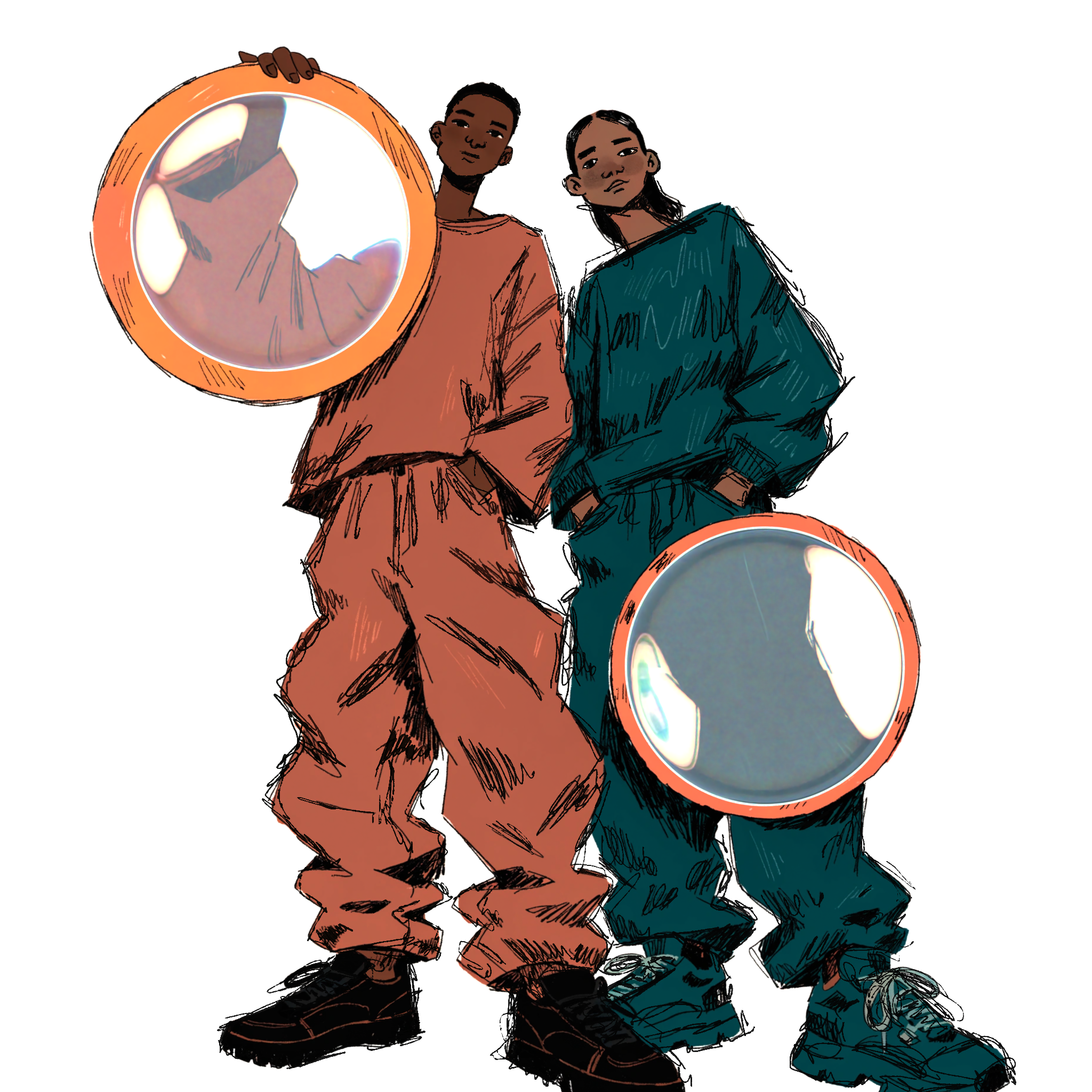 Illustrated characters with physically rendered glass.