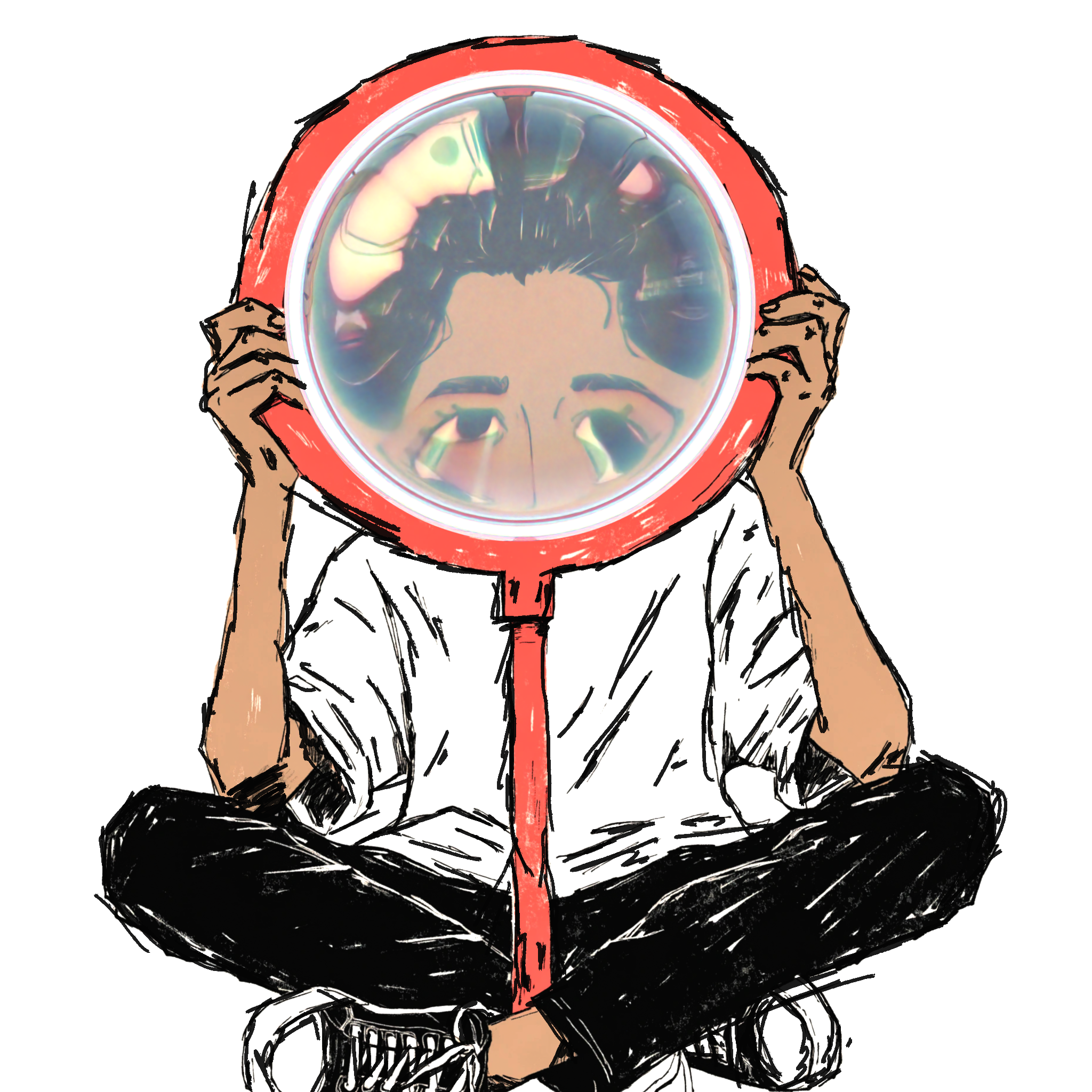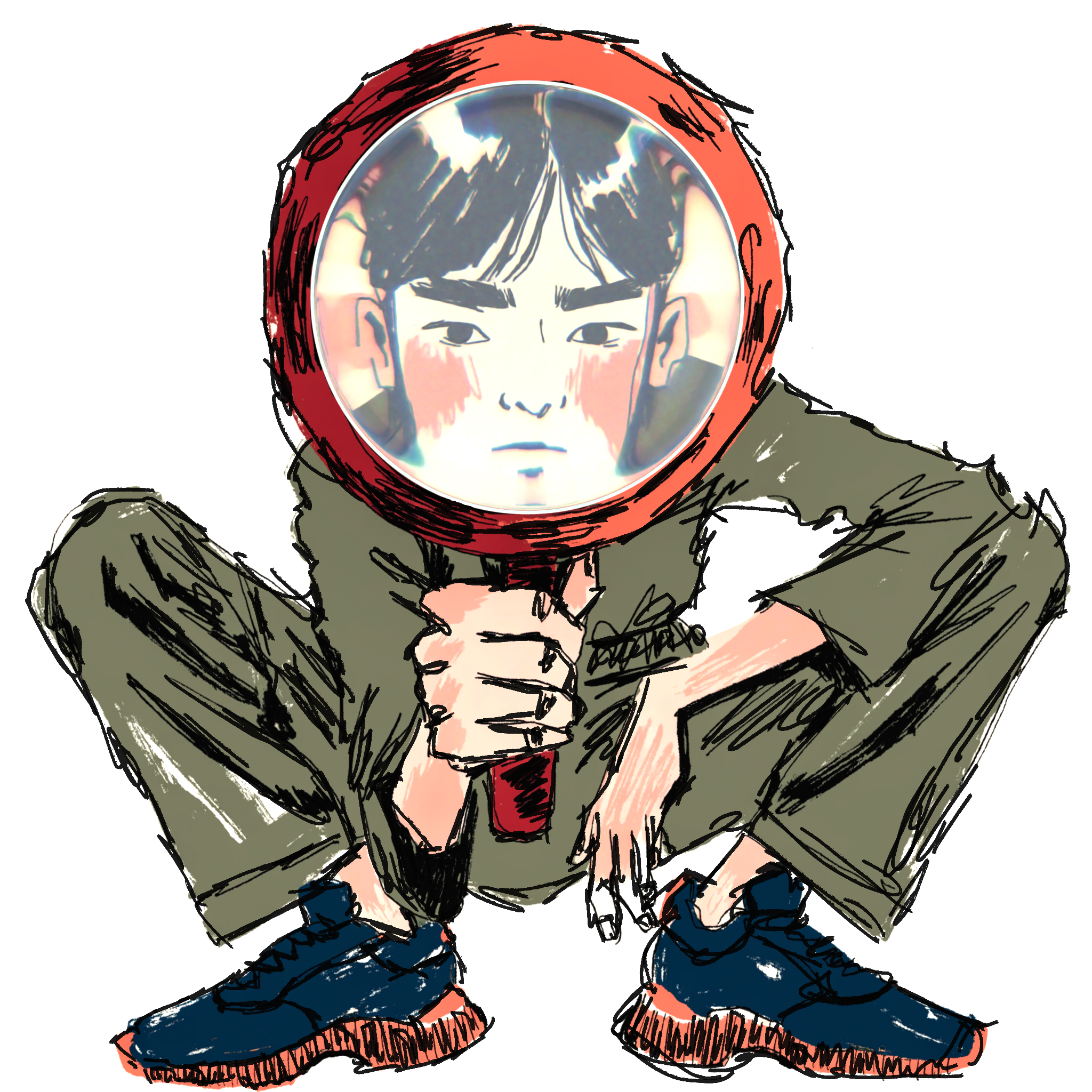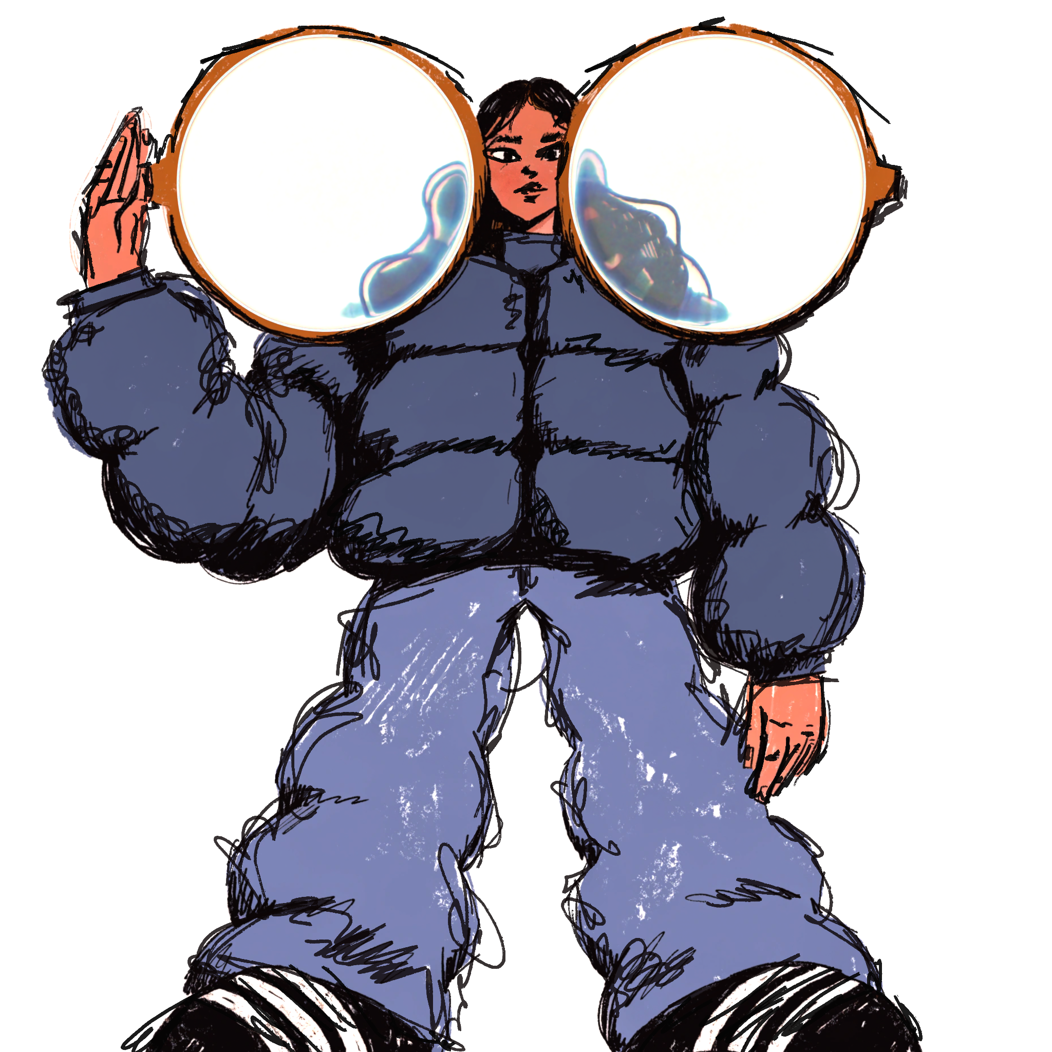 Illustrated characters with physically rendered glass.