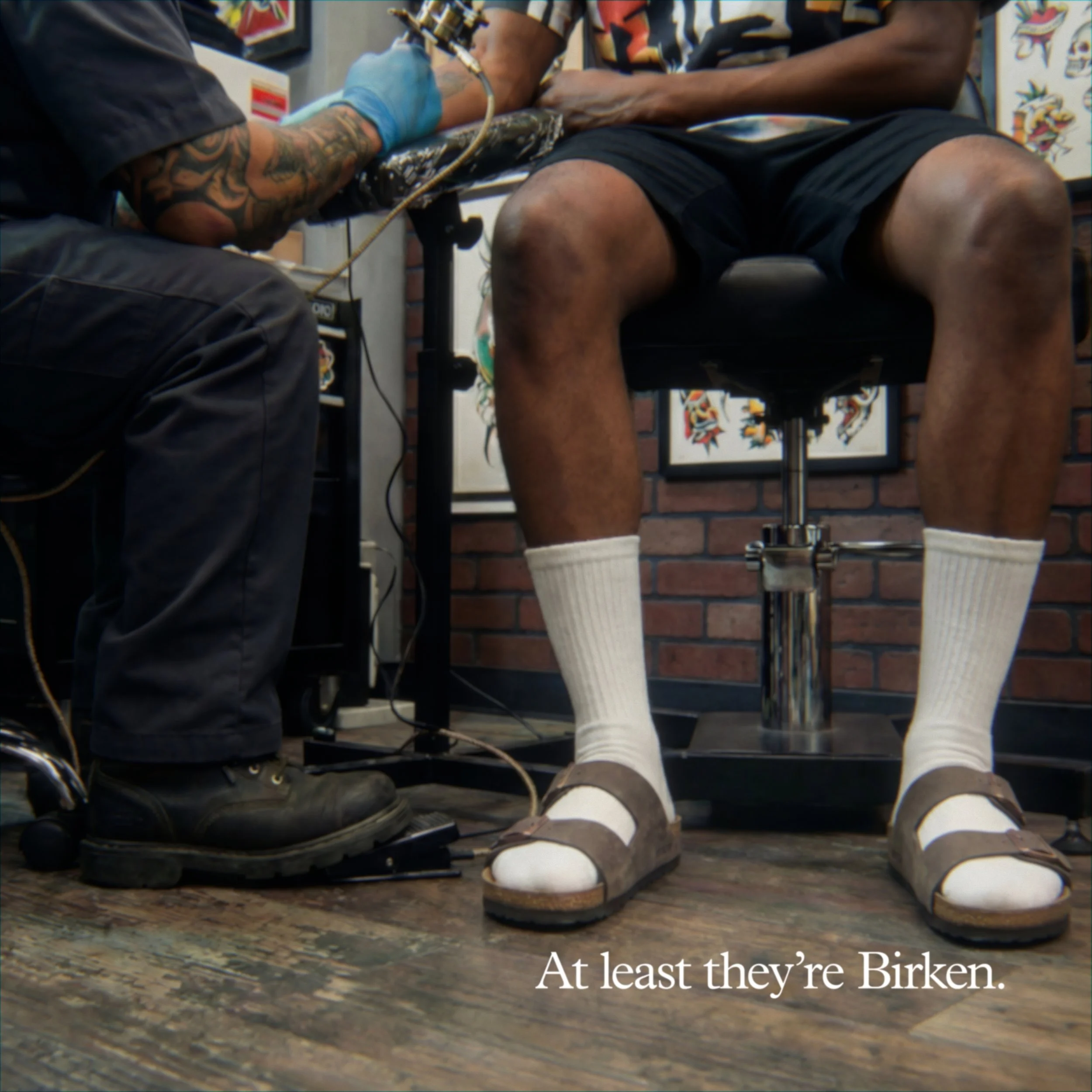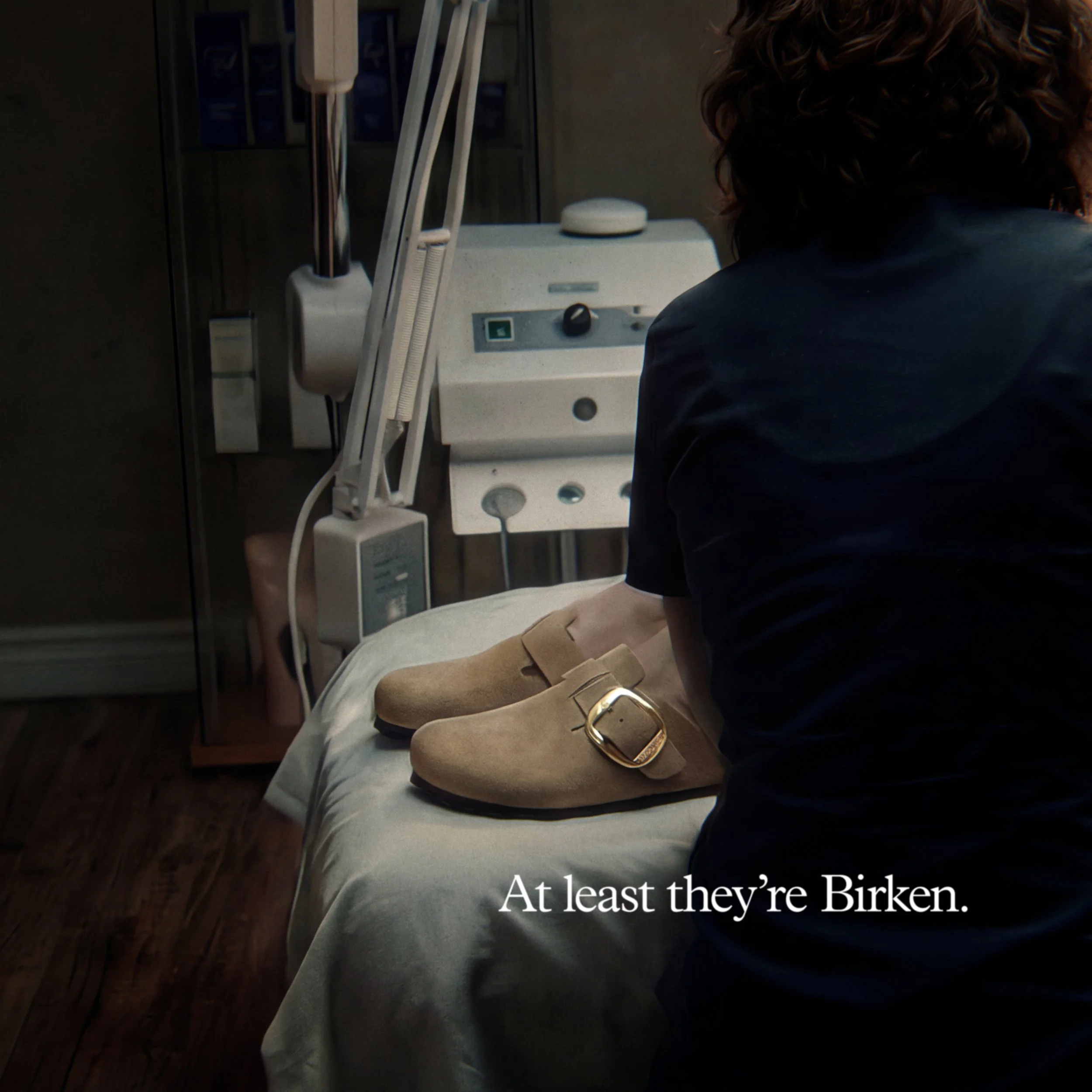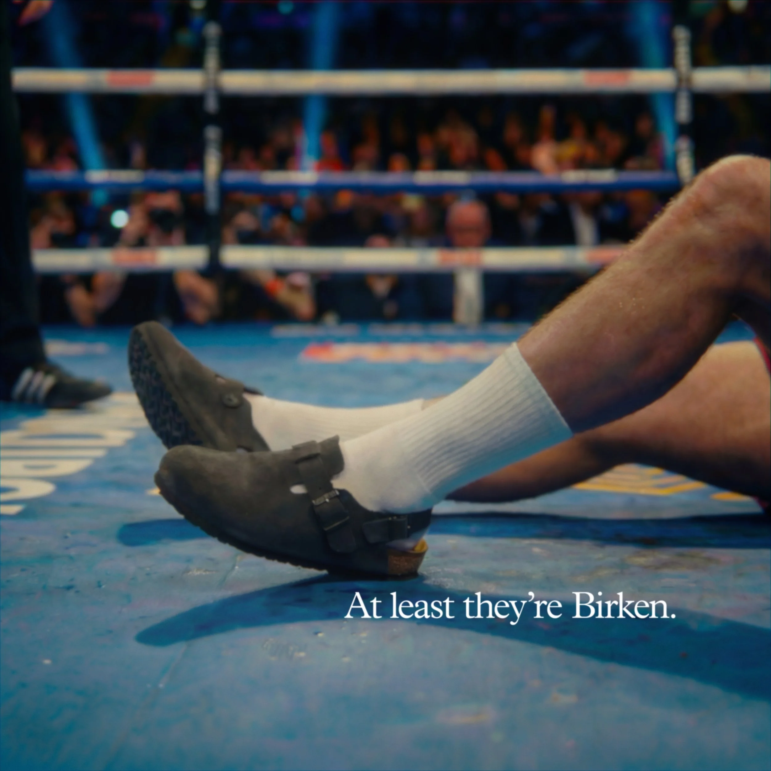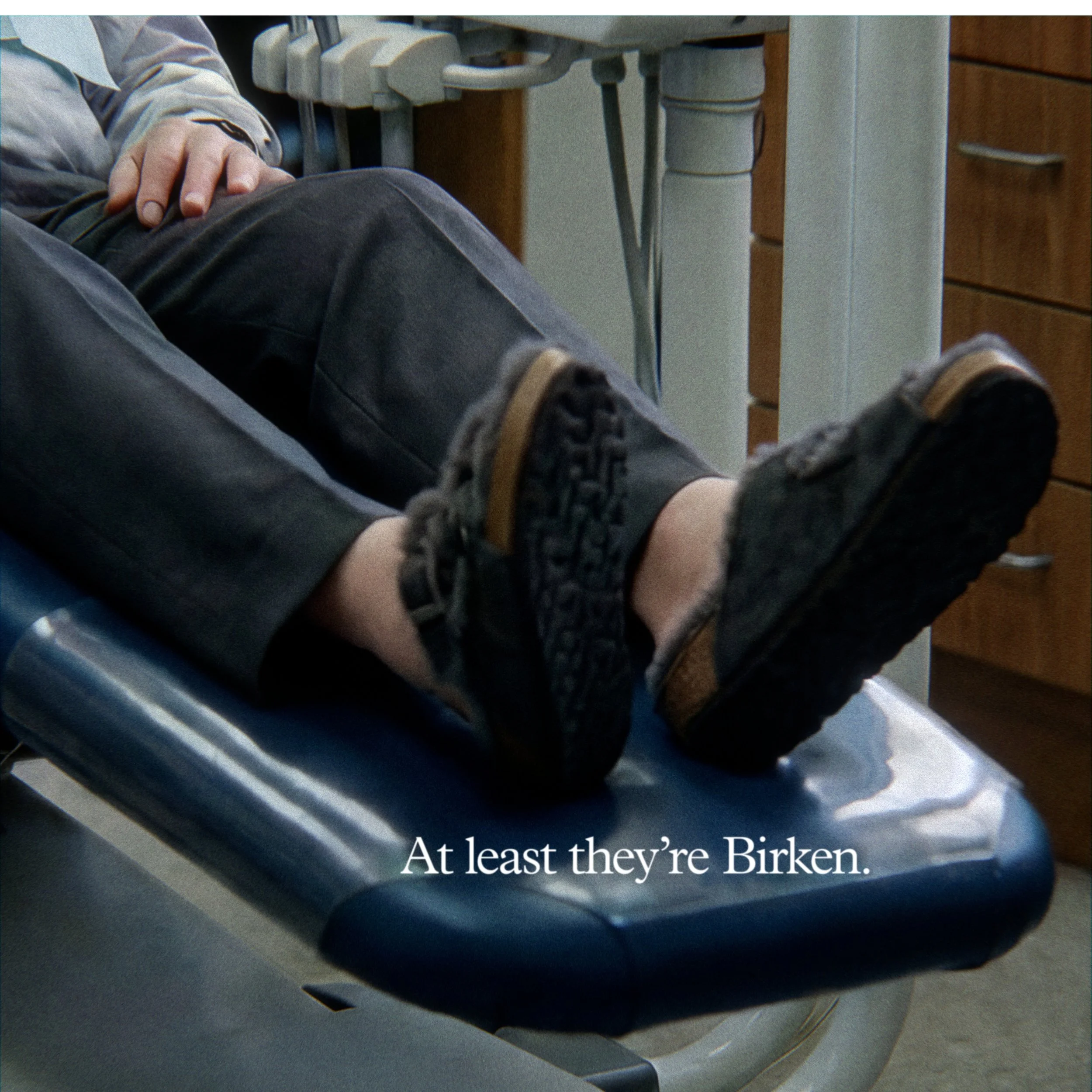 ‘At Least They’re Birken.’ A diptych campaign showing life’s most painful moments. A knockout punch, getting a tattoo, a Brazilian wax, a heartbreak, a dentist’s chair. However, in each image, a second image reveals the same person’s feet, comfortably in a pair of worn-in Birkenstocks. Alongside is the tagline ‘At least they’re Birken.’ This campaign captures something true, life will always find a million ways to hurt you, but the right pair of shoes won’t be one of them. Birkenstocks are famously tough to break in but once they’re molded to your feet, nothing else comes close. Pain is temporary but the comfort is permanent.
